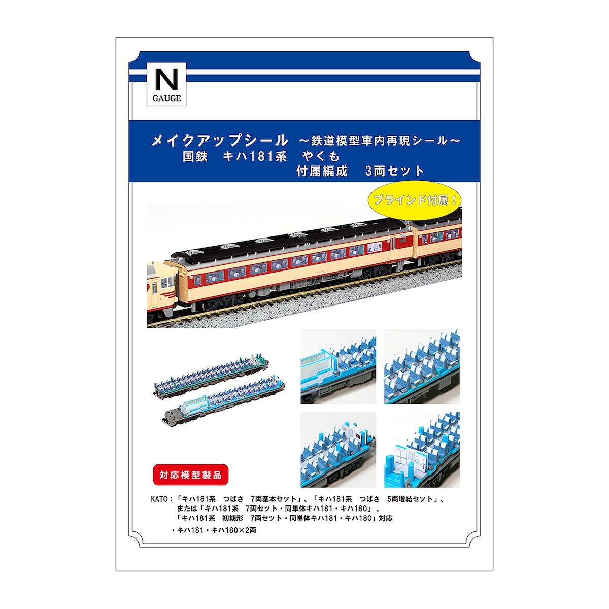 「やくも」に関しては、KATOの381系電車シリーズの「やくも」はすべてメイクアップシール化し、昨年には新型車両の「273系やくも」も製品化しましたが、これまでも「やくも」の元祖となる国鉄時代の「キハ181系」で「やくも」を再現したいとのお声を頂戴してきました。