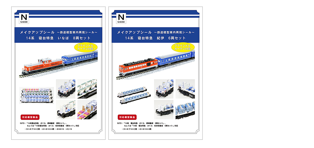 この14系寝台特急「いなば」と「紀伊」の製作にあたっては、昨年、発売したメイクアップシール「夜行鈍行はやたま」、そして「夜行鈍行山陰+スユニ50」リリース後、「昔(昭和50~60年代頃にかけて)、活躍した列車」を再現できるシールを製品化してほしいというご意見を思いのほか多くいただきました。