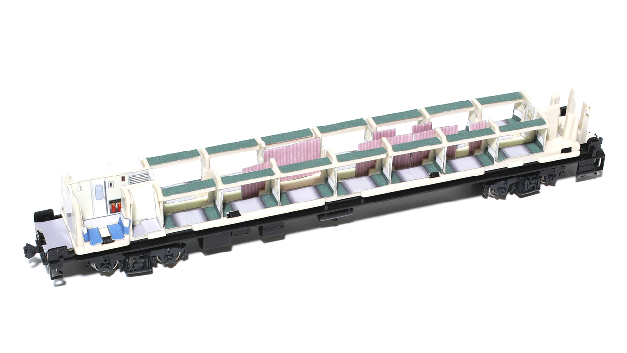床ベッドモケットに加え、ベッドカーテン・寝具をマットシールで再現できます。壁面に関しては、乗務員室、デッキ配電盤まで忠実に再現しました。