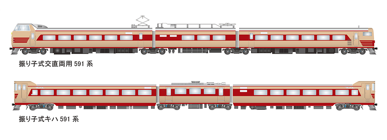 さて1968年には、すでにそれまでの線路等級を上げる事によって高速化させるという概念ではなく、振り子システムによって高速化させるという新しい高速化の概念が発表されていました。振り子システムによって分岐器の通過速度や曲線での通過速度を向上させ列車の平均速度を上げるという今までとは異なる構想です。1970年~1972年にかけて交直両用591系・キハ591試作試験車が完成し、伯備線にて予想を上回る評定速度を叩き出したのでした。