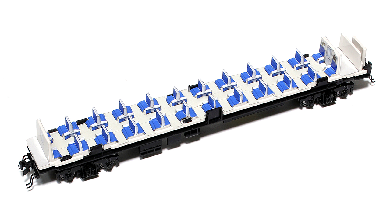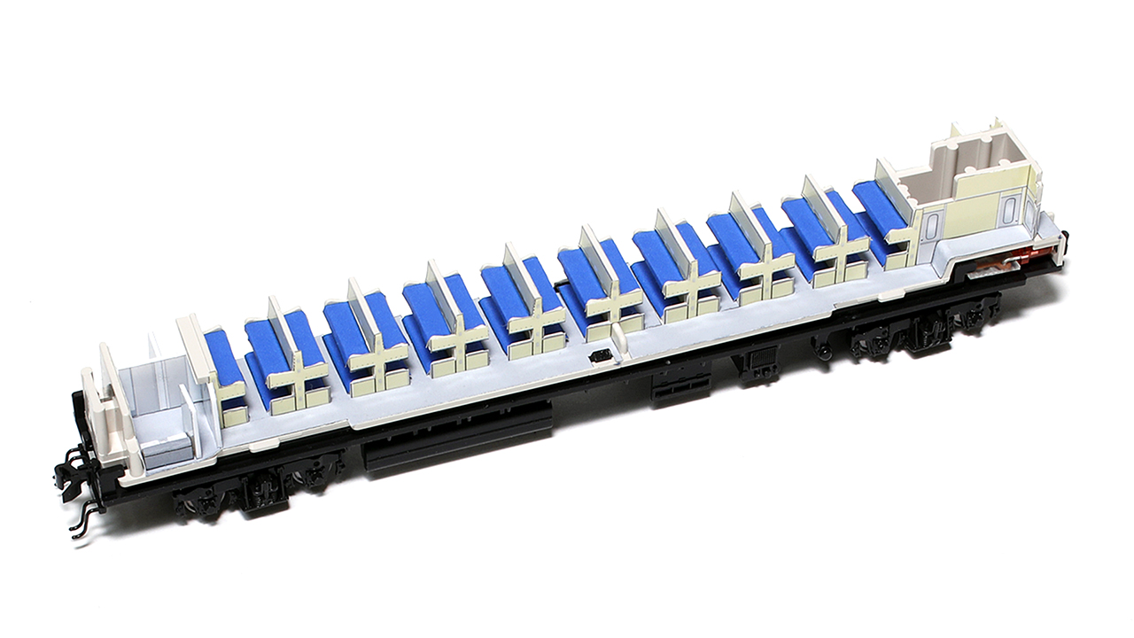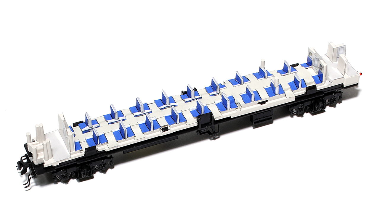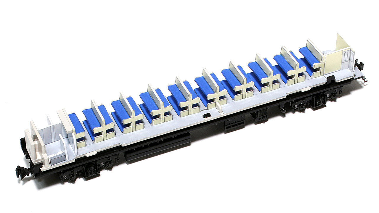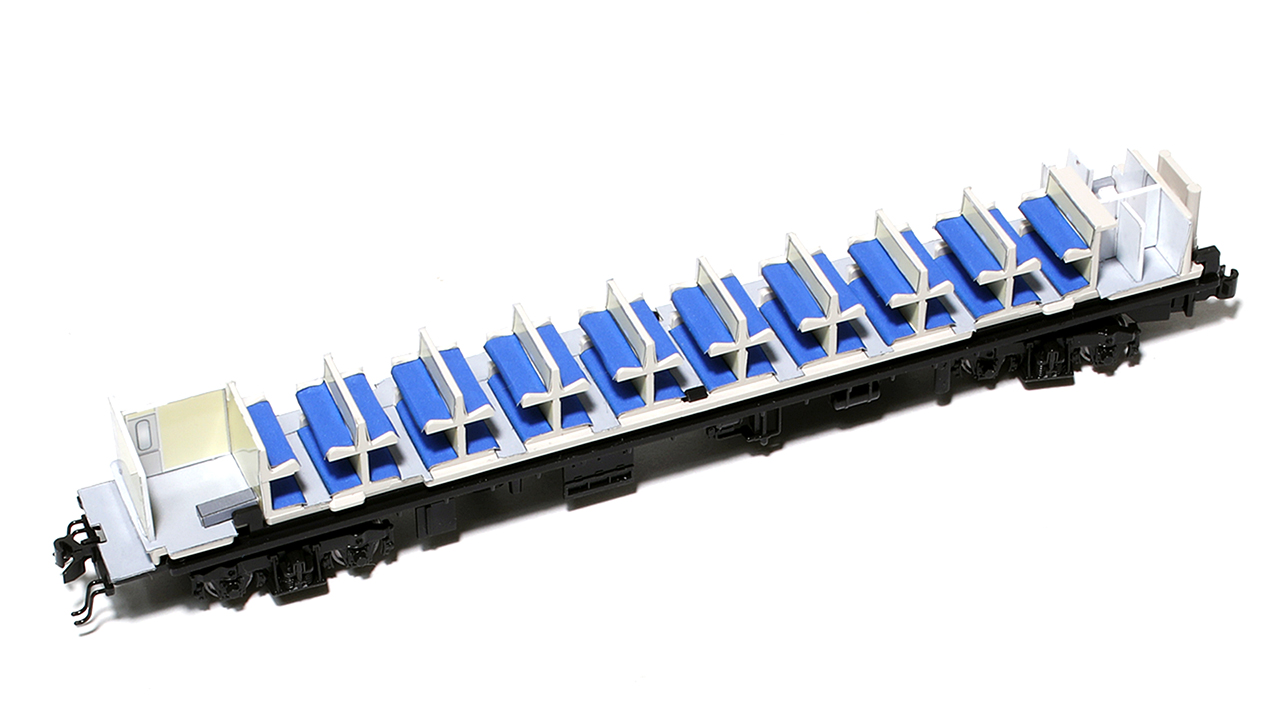 今回の「はやたま」シール化にあたっては、座席モケットと寝台ベッドのモケットの色味を共通化しました。また、各車両毎に床面の色が異なっており、画像では分かりませんが、トイレスペースの床面はラインを入れた再現になっています。