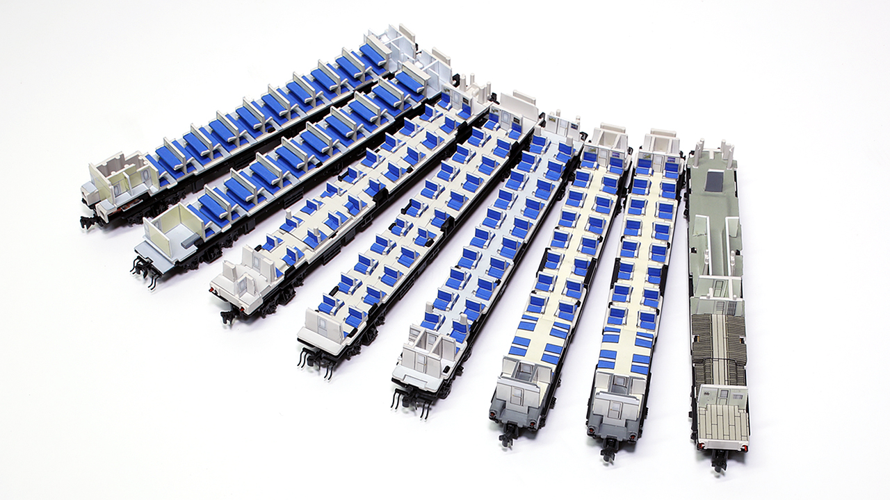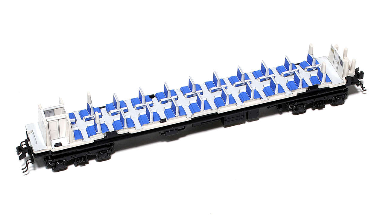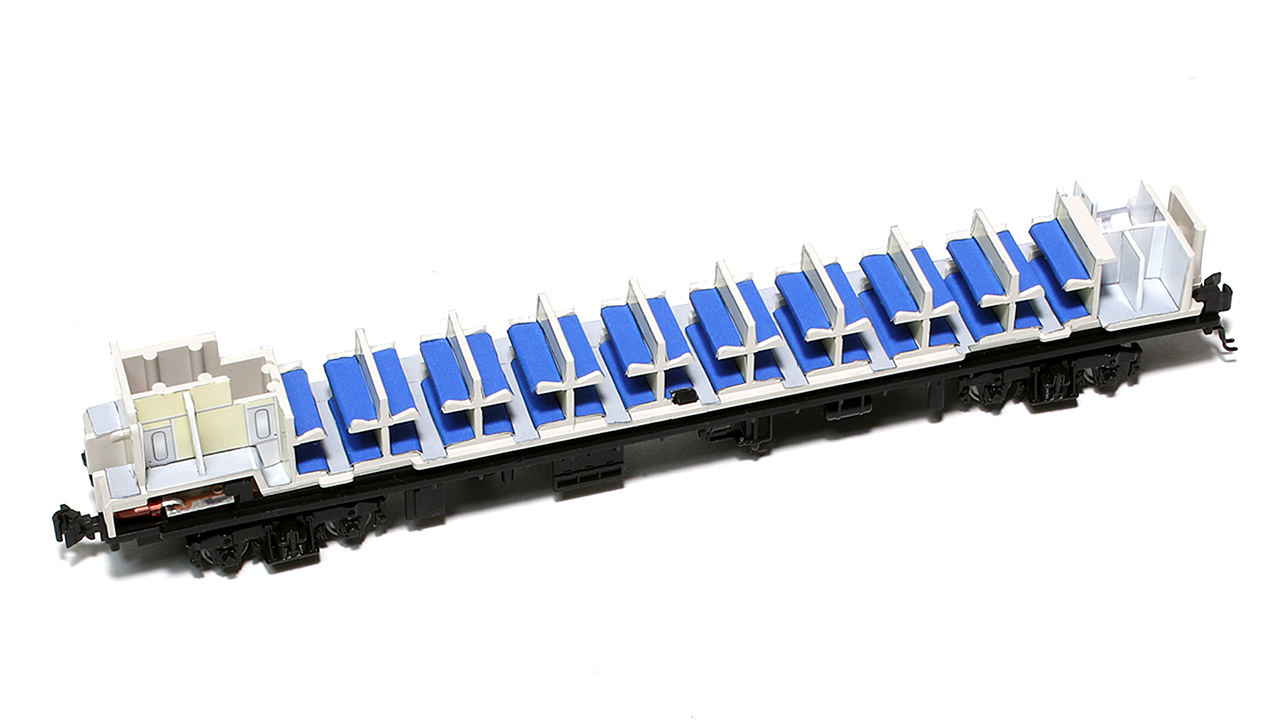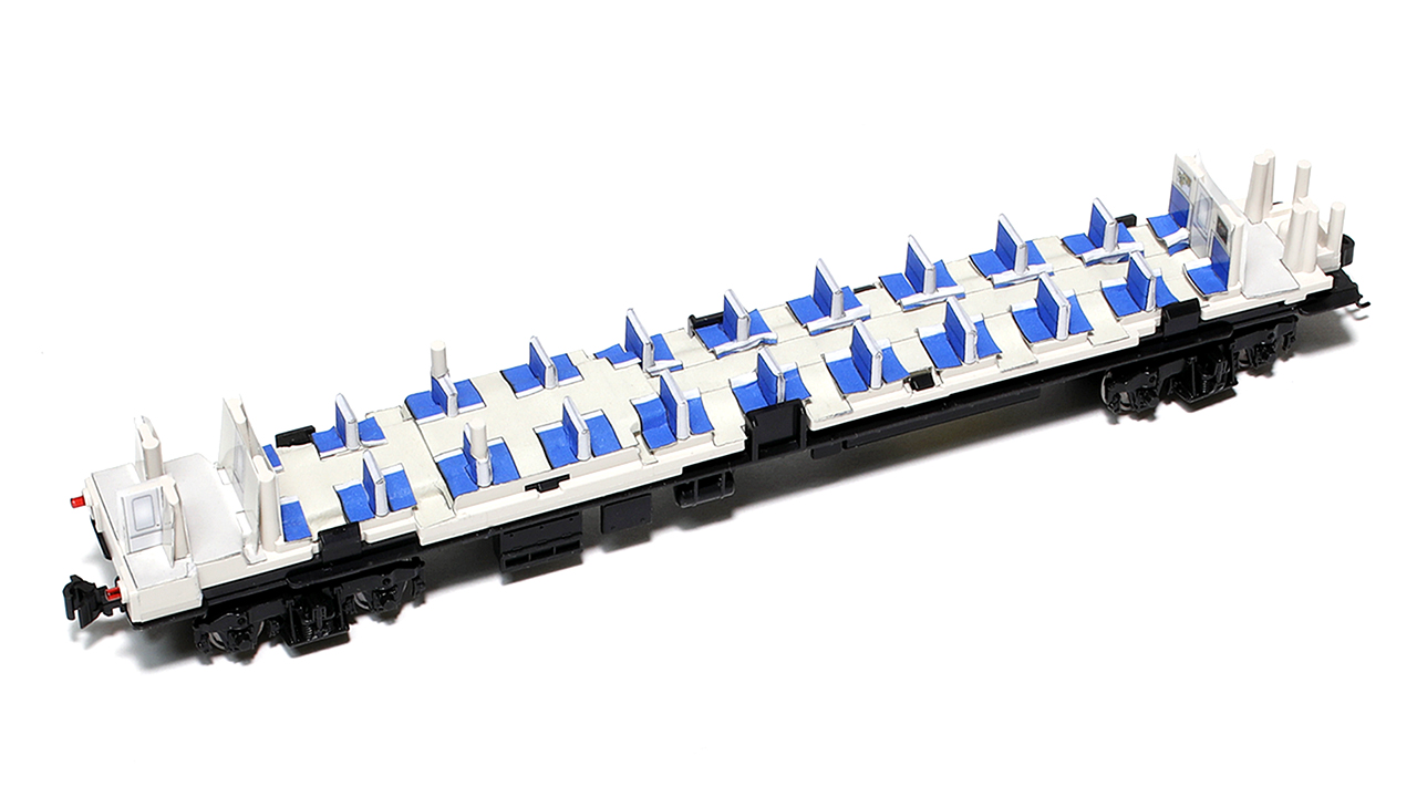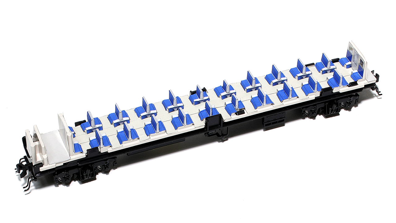 今回の「はやたま」シール化にあたっては、座席モケットと寝台ベッドのモケットの色味を共通化しました。また、各車両毎に床面の色が異なっており、画像では分かりませんが、トイレスペースの床面はラインを入れた再現になっています。